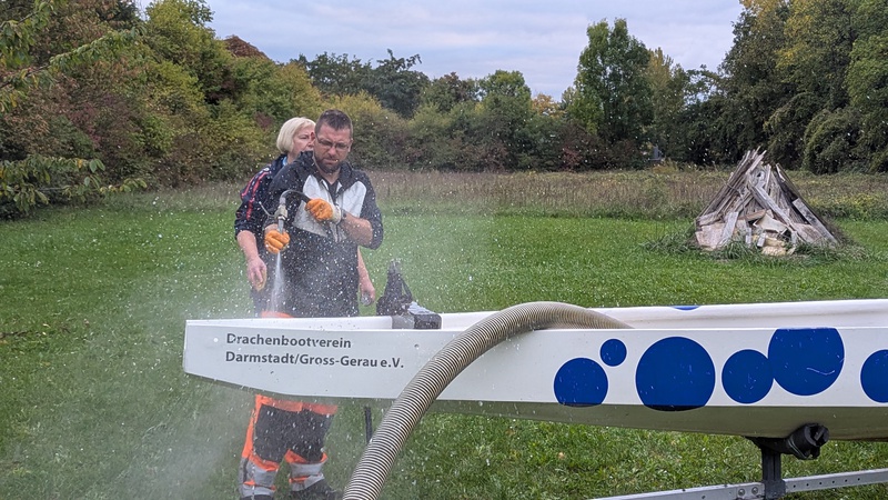 Mit einer gemeinsamen Reinigungsaktion waren der Steg und das Drachenboot dann aber schnell wieder einsatzfähig, als das Hochwasser zurück gegangen ist.